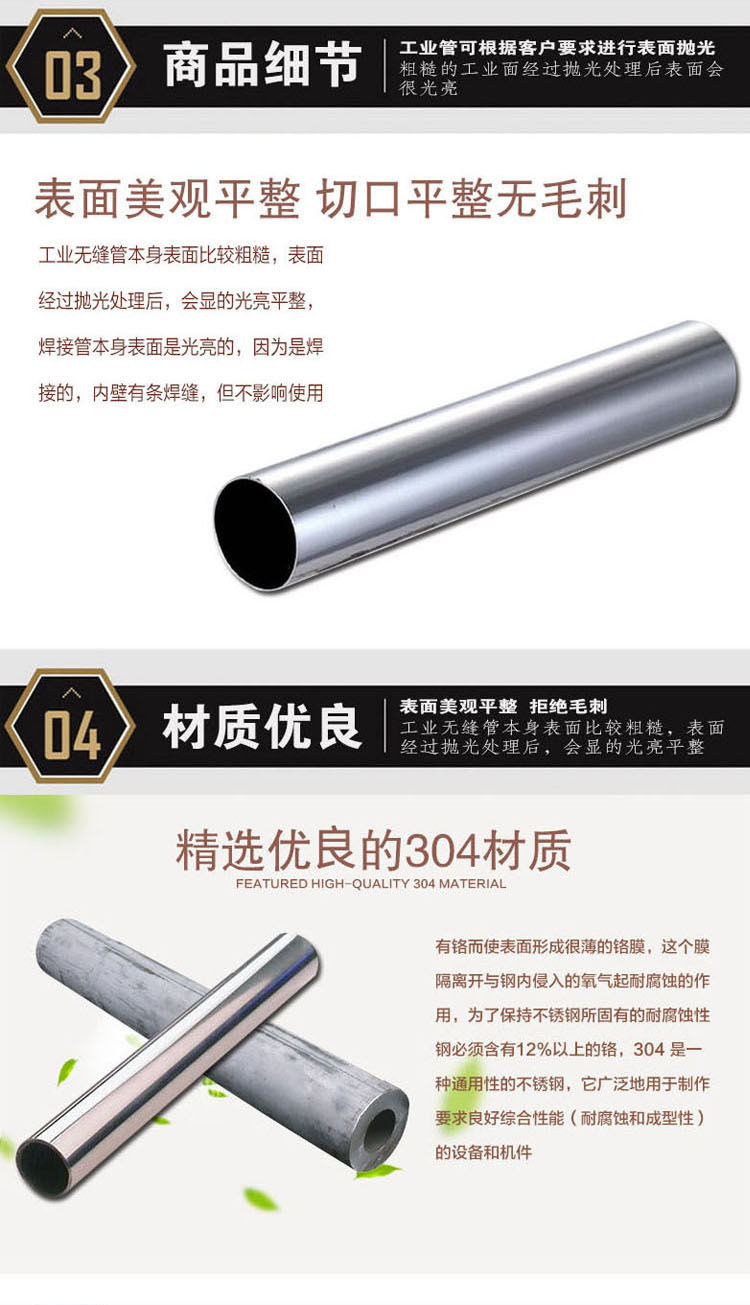 304薄壁不銹鋼管是除了圓管以外的其他截面形狀的鋼管的總稱, 有焊接異型管和無(wú)縫異型管。 因?yàn)椴馁|(zhì)的關(guān)系,不銹鋼異型管一般為304以上材質(zhì)為多,200、201材質(zhì)硬度強(qiáng)風(fēng),成型難度加大。