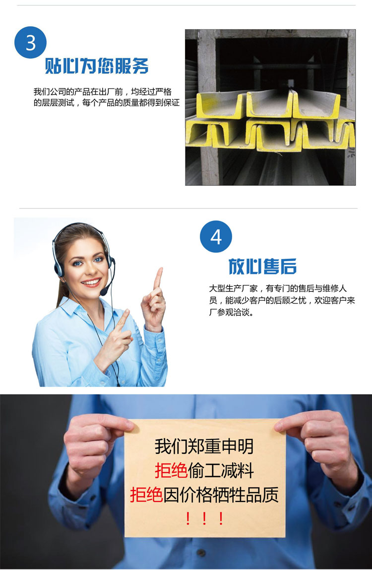 301不銹鋼角鋼:延展性好,用于成型產品。也可通過機械加工使其迅速硬化。焊接性好。抗磨性和疲勞強度優于304不銹鋼
